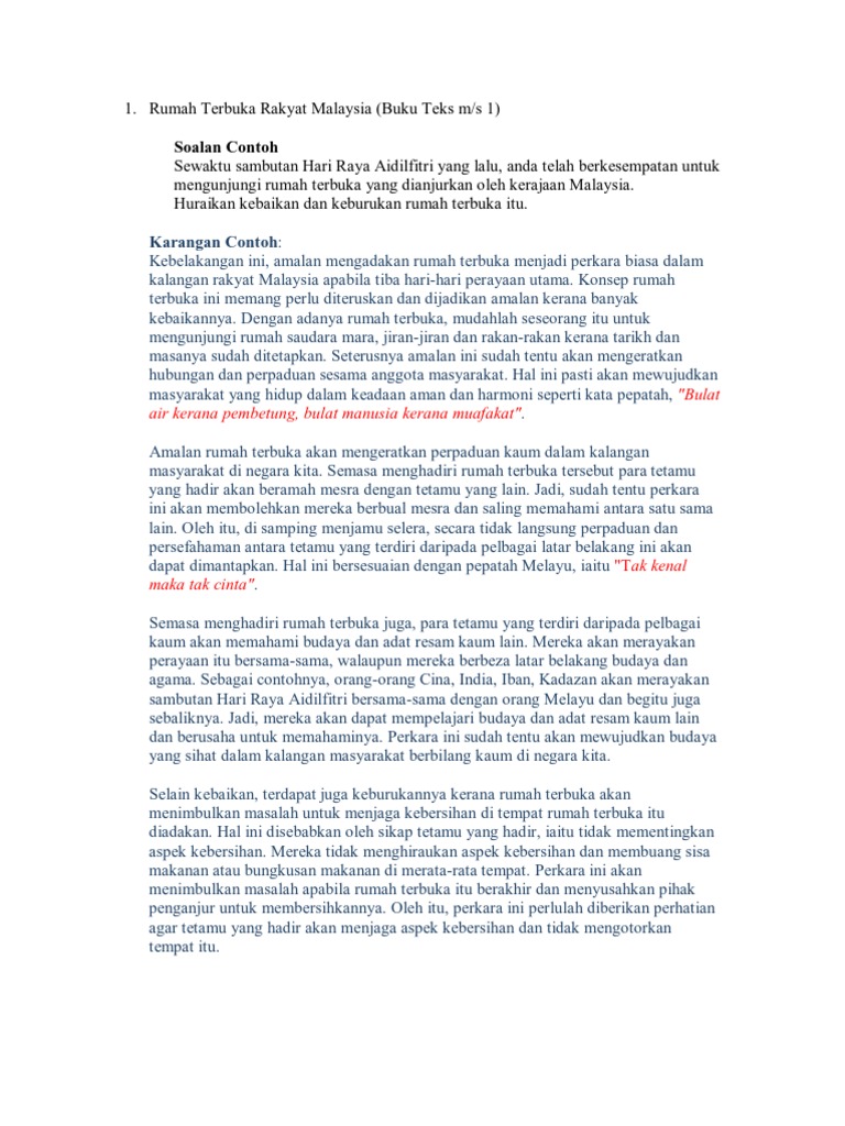 Karangan Rumah Terbuka Ting 5. Kebaikan Amalan Rumah Terbuka Kepada Rakyat Malaysia. Doc Karangan Contoh Spm Rumah Terbuka Firdaus Zukrie Academia Edu.